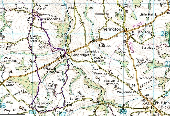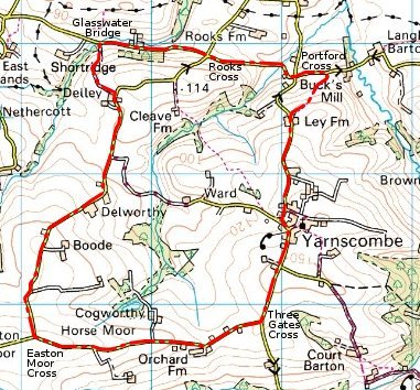 Map 3 - Three Gates Cross, Easton Moor Cross, Delworthy, Glasswater Bridge, Rooks Cross and Portford Cross
